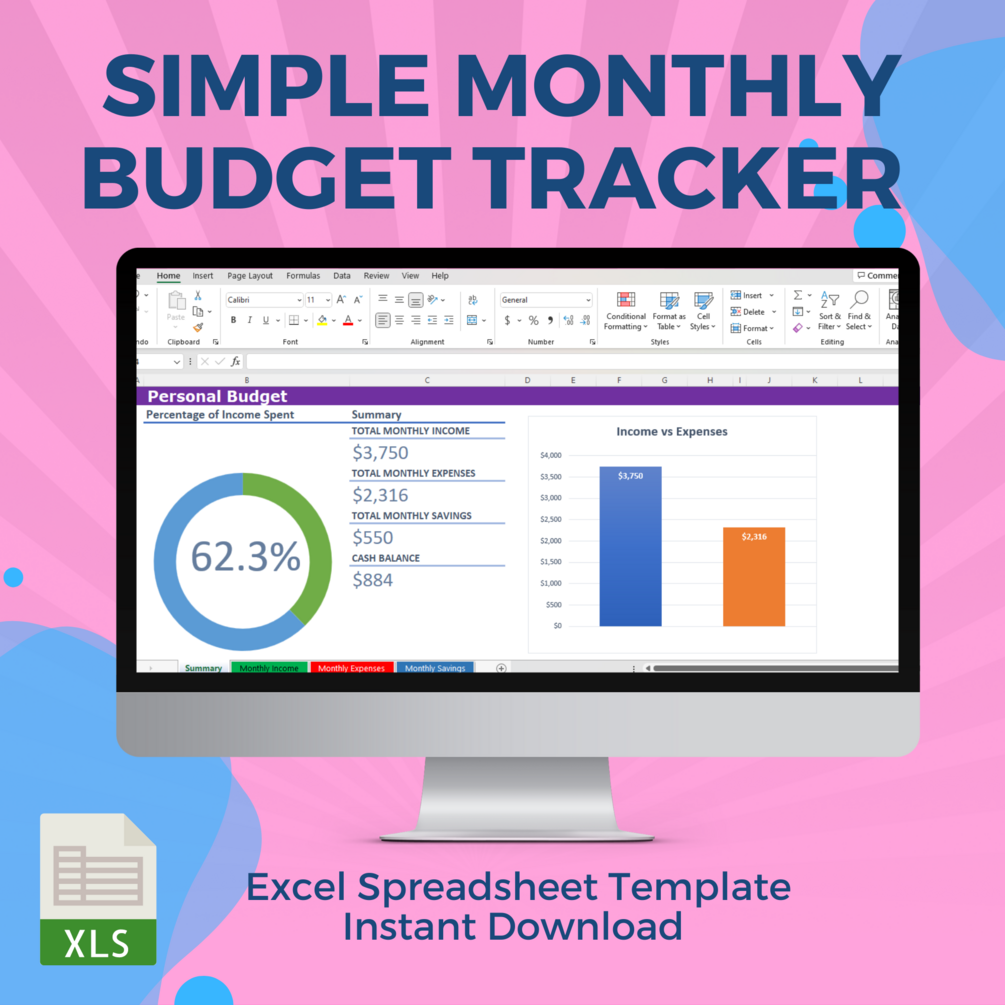 Name: Simple Monthly Personal Budget Spreadsheet Template for Excel